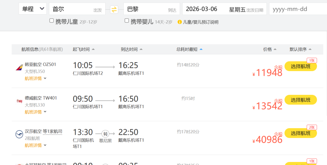 欧洲人是真的慌了!而且不光是国内,连带着从韩国过去的直飞,都涨到了1万多!
