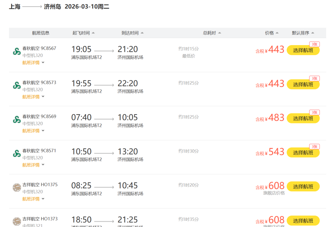 不过反正都是换个地方散散心,旅旅游,周边机票的价格倒也是蛮划算的。