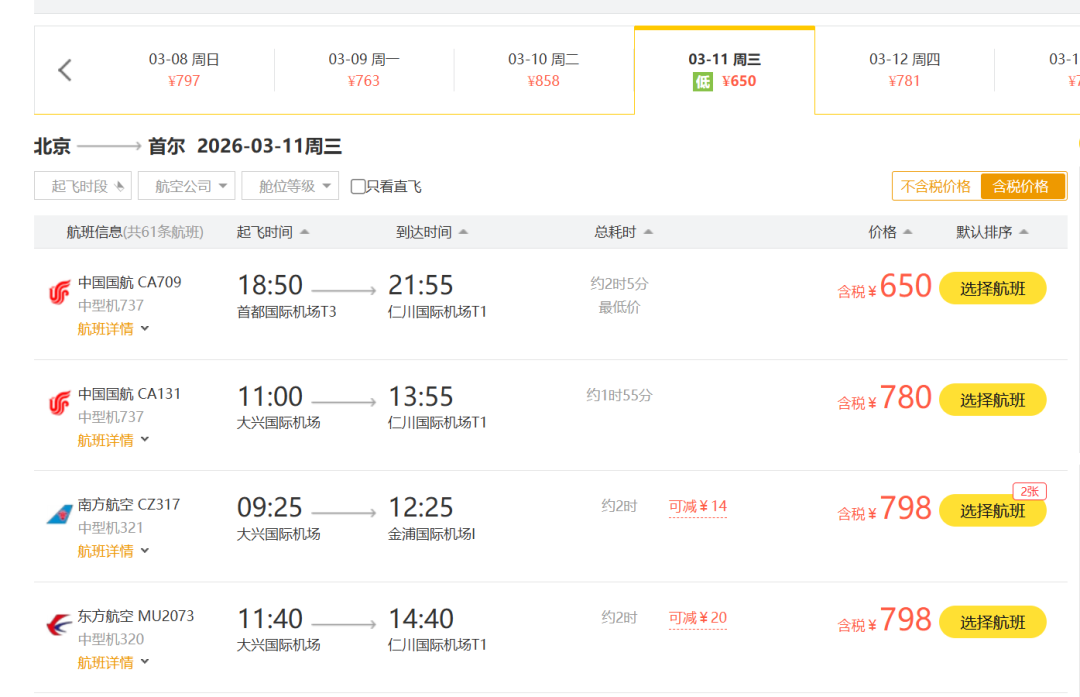 北京飞首尔国航直飞的价格才600多块。这个价格太超值了。