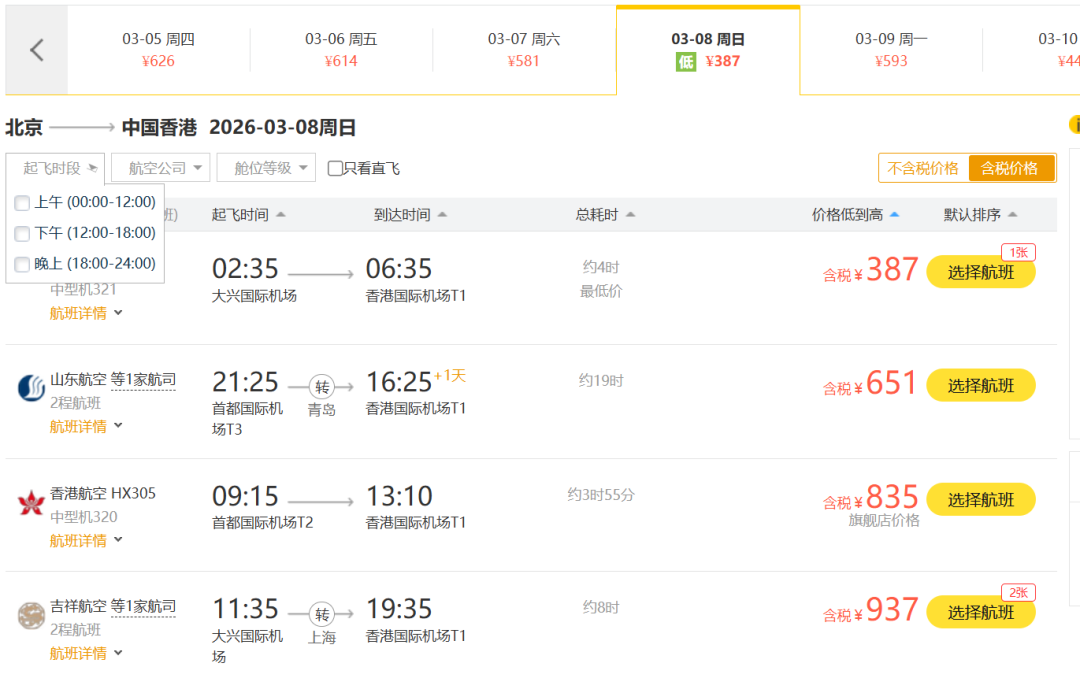 不光是上海,北京出发去多个目的地的机票价格也是非常划算。